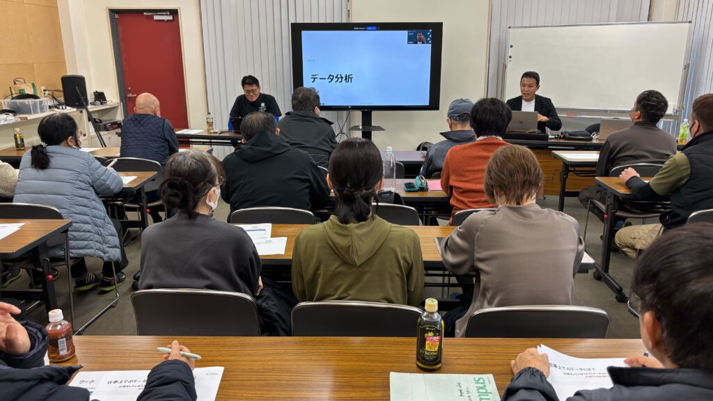 中には高齢の社員の方もいましたが、やはりみなさんは「自分の仕事を楽にしたい」「会社に貢献したい」という想いが強く、データ分析の際の簡単なワークでは、隣の席同士で自然に会話が生まれるなど、とても和やかな雰囲気の中で楽しく研修ができました。